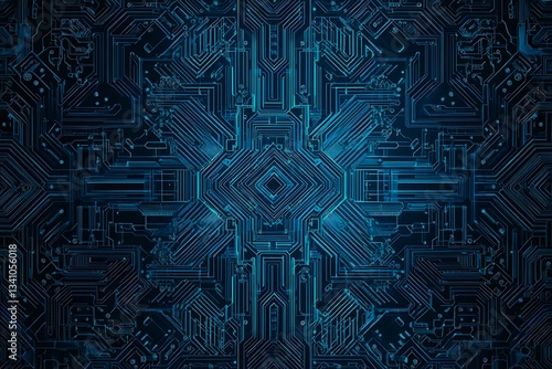 Abstract close-up of a glowing blue digital circuit board, showcasing intricate connections and technological design on a black background.