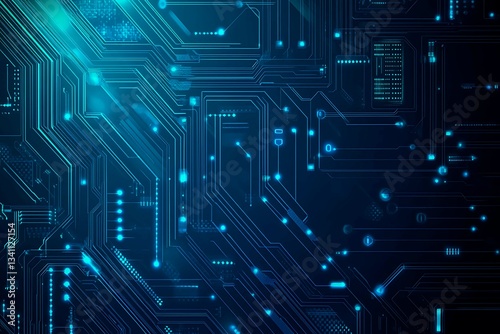 Abstract close-up of a glowing blue digital circuit board, showcasing intricate connections and technological design on a black background.