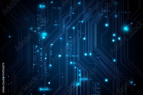 Abstract close-up of a glowing blue digital circuit board, showcasing intricate connections and technological design on a black background.