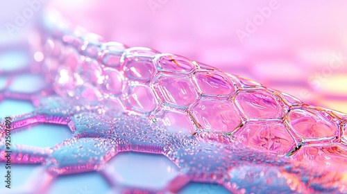 Abstract close-up of a honeycomb structure with vibrant colors, showcasing a blend of scientific and artistic elements.
