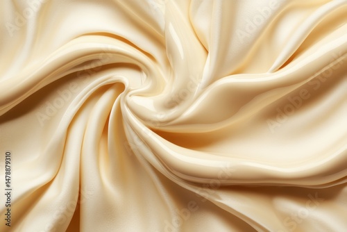 Abstract Close-Up of Creamy Beige Silk Fabric with Swirls and Folds, Elegant Texture, Soft Lighting, Macro View