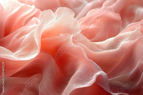 Abstract Close-Up of Peach-Colored Sheer Fabric with Delicate Texture