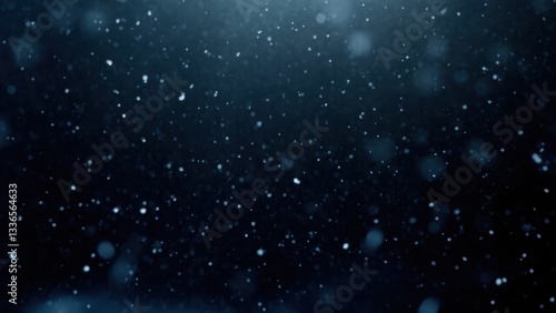 Abstract Close-Up of Snowflakes Falling on a Dark Blurred Background