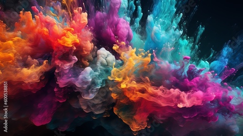 Abstract Color Splash Background. High Detail Burst of Vibrant Paint. 3D Amorphous Multi Color Cloud. Colorful Liquid Smoke.