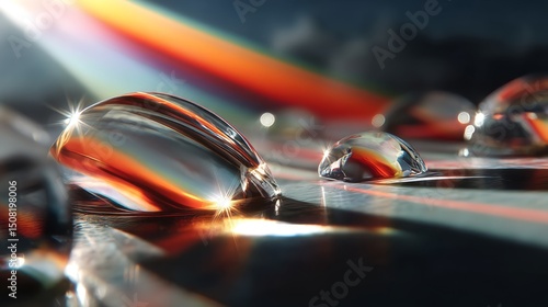 Abstract color spotlight on water droplets nature background close-up viewpoint vibrant dot reflections