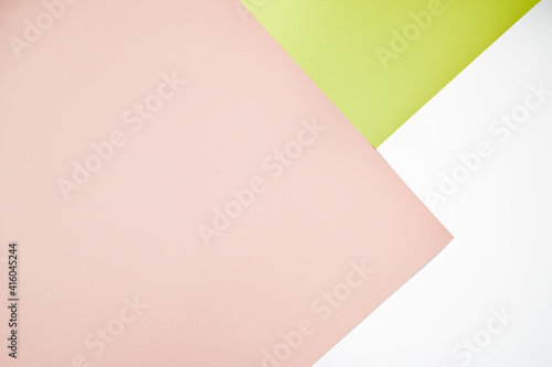 Abstract colored background. Minimal geometric shapes and lines in pastel pink, pistachio-green and white colours