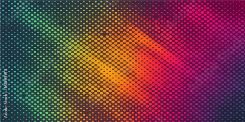 Abstract, colorful, and vibrant seamless rainbow halftone dot pattern wallpaper design