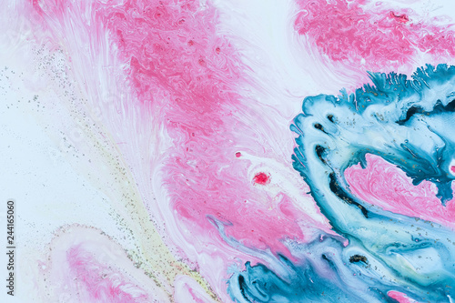 Abstract colorful background. Drawing with acrylic paints on water. Texture play of paint