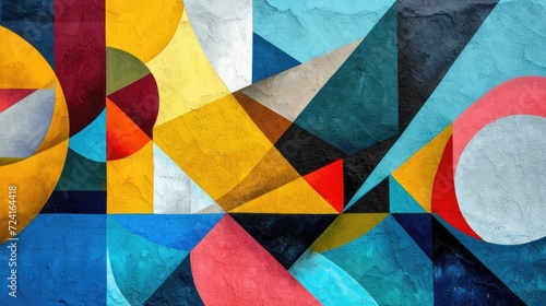 Abstract colorful background with geometric textured oil or acrylic shapes. Artistic banner with wall texture and brush strokes