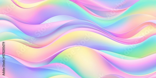 Abstract colorful background with soft, wavy patterns flowing horizontally. Vibrant pastel colors, including pink, blue, purple, green, and yellow, blend smoothly with a gradient effect.