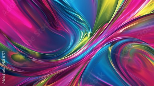 Abstract colorful background with wavy swirling liquid acrylic paint flowing, a mixture of vibrant colors in dynamic composition