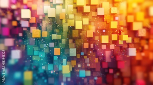 Abstract colorful blurry pixel blocks background. Bg and technology, digital world concept. 3D Rendering
