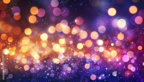 Abstract colorful bokeh background with glowing lights and sparkles.