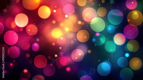 Abstract colorful bokeh circles on dark backdrop with soft focus