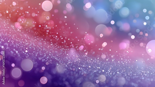 Abstract Colorful Bokeh Light Pattern with Glittering Particles in Pink Purple and Blue Tones