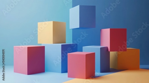 Abstract Colorful Cubes Composition: A Modern Minimalist 3D Render