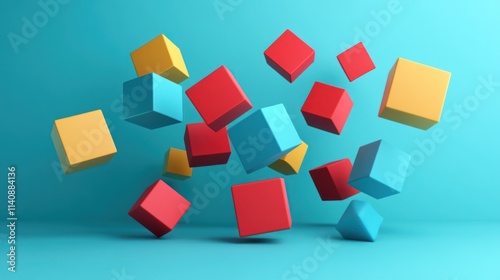 Abstract Colorful Cubes Floating in Teal Background