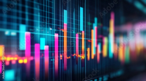 Abstract Colorful Data Visualization with Digital Bars and Graphs Representing Financial or Statistical Information on a Dark Background