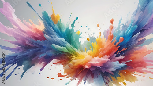 Abstract colorful explosion collides on mid air. Holi powder burst isolated on white background.