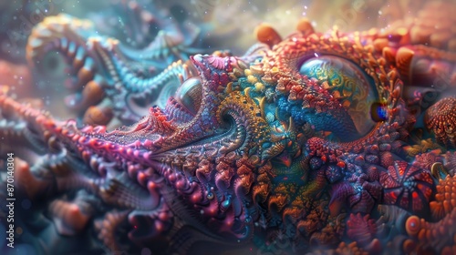 Abstract Colorful Fractal Art with Intricate Patterns and Vivid Colors in a Surreal Dreamlike Landscape