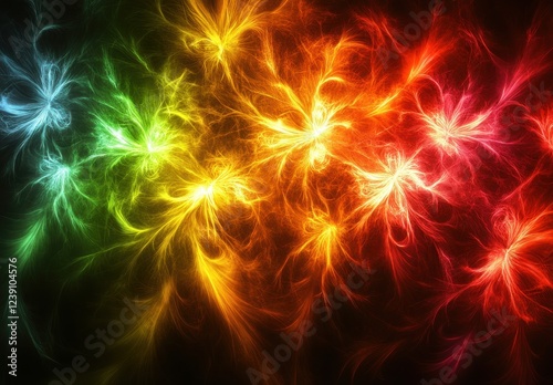 Abstract colorful fractal background with vibrant swirling patterns in shades of red, green, blue, and yellow showcasing dynamic energy and motion.