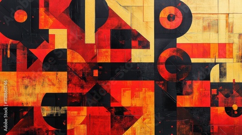 Abstract Colorful Geometric Art in Bold Red Yellow and Black Tones