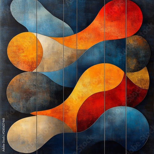 Abstract Colorful Geometric Shapes on Blue Canvas Background Art