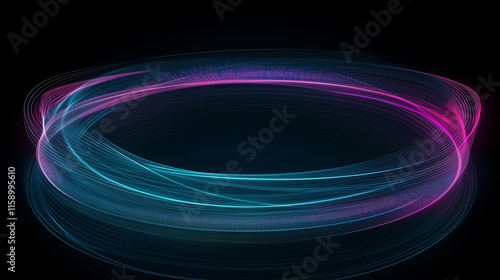 Abstract colorful glowing circle vector illustration. Futuristic digital data network concept. AI, technology, and connectivity design. Isolated on black background. Perfect for science fiction, cyber