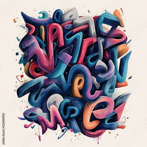 Abstract Colorful Graffiti Style Letters Composition