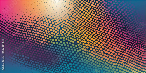 Abstract colorful halftone pattern with dotted mosaic design and vibrant rainbow colors on a digital textured background