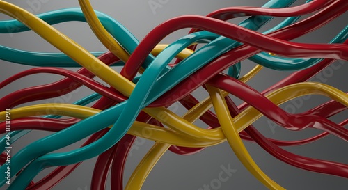 Abstract Colorful Intertwined Curves: A 3D Render of Dynamic, Vibrant Lines