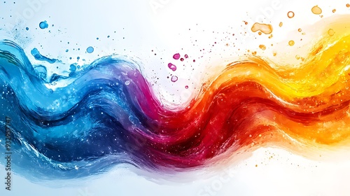 Abstract colorful liquid waves with splashes, capturing movement and energy.