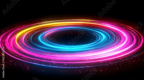 Abstract Colorful Neon Light Trails Swirling Circular Galaxy Design