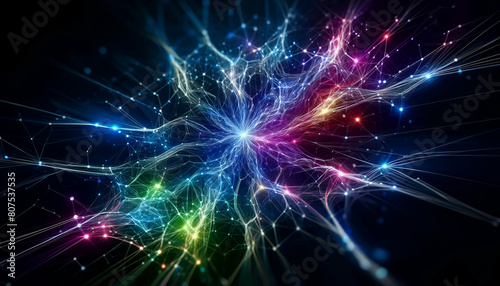 Abstract Colorful Neuron Background Wallpaper with Glowing Lines HD Generative AI