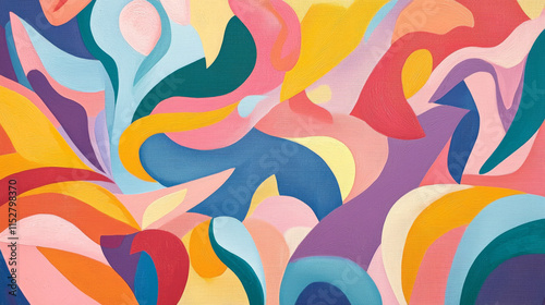 Abstract colorful painting with vibrant swirling shapes and flowing patterns