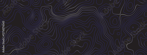 "Abstract Colorful Pattern with Seamless Lines and Topographic Map Design Featuring Sea and Mountainous Terrain in a Geometric Grid Style on a Bold Black Background"