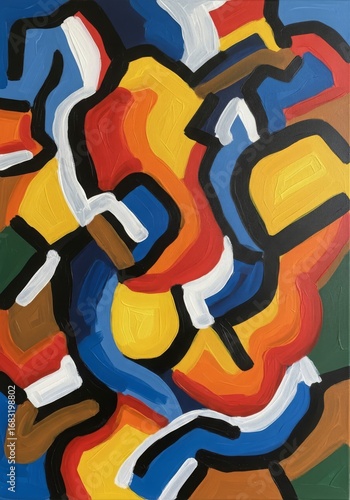 Abstract Colorful Shapes with Black Outline Painting Style Digital Art