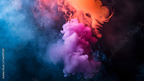 Abstract colorful smoke with a beautiful color composition on a dark background