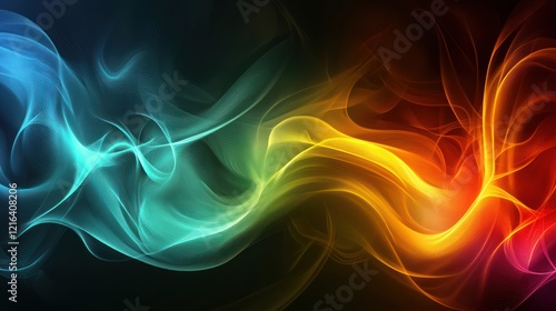 Abstract Colorful Swirling Smoke, Energy, Dynamic, Vibrant Hues, Glowing, Motion, Flowing, Waves, Design