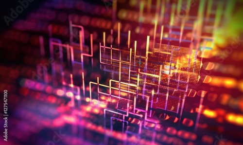 Abstract colorful tech matrix with geometric neon glowing grid structure background