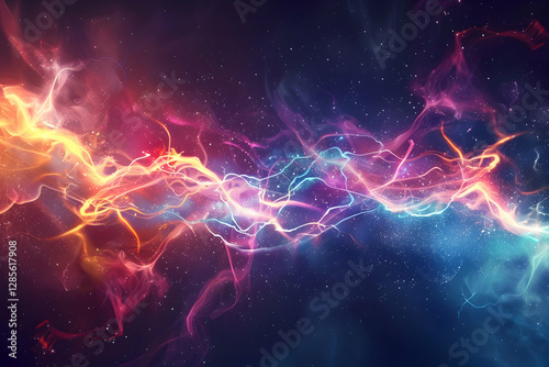 Abstract colorful wave of light and energy swirling through a dark cosmic background