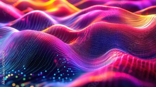 Abstract Colorful Waves, A Digital Landscape of Vibrant Hues and Intricate Patterns