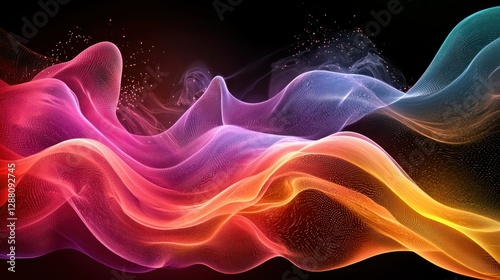 Abstract Colorful Waves Flowing, Dark Background, Digital Art, Website Design