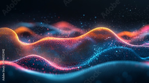 Abstract Colorful Waves of Light and Particle Effects Creating a Dreamy Atmosphere in a Dark Environment Representing Technology and Innovation