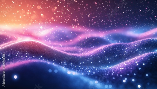 Abstract colorful waves with glittering particles creating a dreamy and vibrant atmosphere for backgrounds or digital art projects