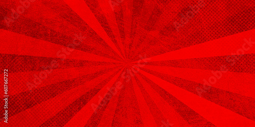 Abstract comic red background for style pop art design. Retro burst template backdrop. Light rays effect. Vintage red sunburst poster with rays
