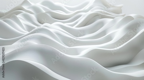 Abstract composition featuring flowing white wave surfaces on a clear background, evoking a sense of tranquility and elegance .