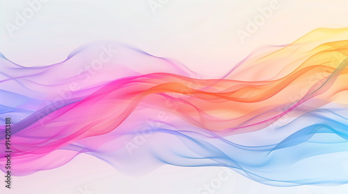 Abstract Composition of Colorful Waves and Swirls Creating Fluid Motion Against Soft Gradient Background in Pink, Purple, Orange, and Blue Tones