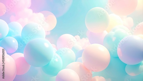 Abstract Composition of Floating Pastel Spheres with Soft Lighting on a Cloudlike Background