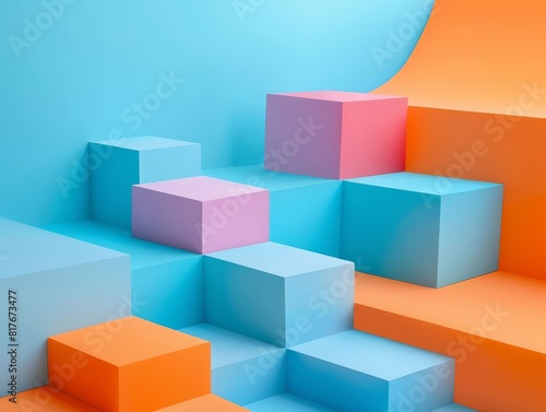 Abstract composition of pastel blocks on a dynamic blue and orange field, suitable for visual content on creative thinking